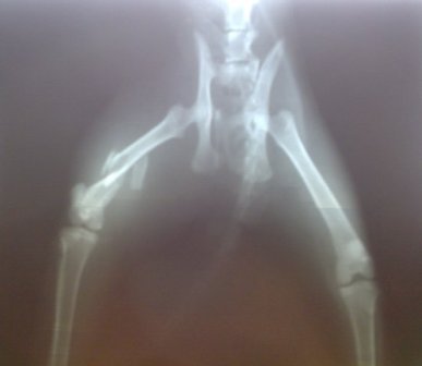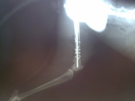 تصاویر جراحی ترمیم استخوان ران شکسته شده گربه (شکستگی چندتایی، 5 قطعه)