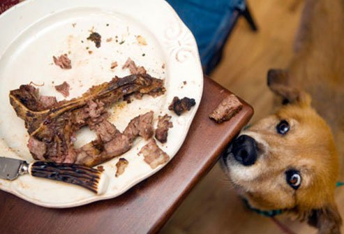 چربی های پخته و یا نپخته باقی مانده از گوشت غذا می تواند منجر به التهاب پانکراس در سگ ها شود. و بسیاری از استخوان ها نیز می توانند در هنگام خرد شدن توسط سگ در دهان و لثه و یا حتی مری زخم ایجاد کنند و یا منجر به انسداد مری شوند. هرگز در غذای سگ از استخوان مرغ (گردن، بال، ران و ..) استفاده نکنید و در صورت استفاده از استخوان قلم گوسفند هنگام خوردن مراقب سگ باشید و زمانی که نزدیک سگ نیستید اینگونه استخاون ها را در اختیارش قرار ندهید. به جای استفاده از استخوان می توانید از خوراکی های جویدنی مخصوص استفاده کنید که بی خطر بوده و حاوی مواد مغذی نیز هستند.